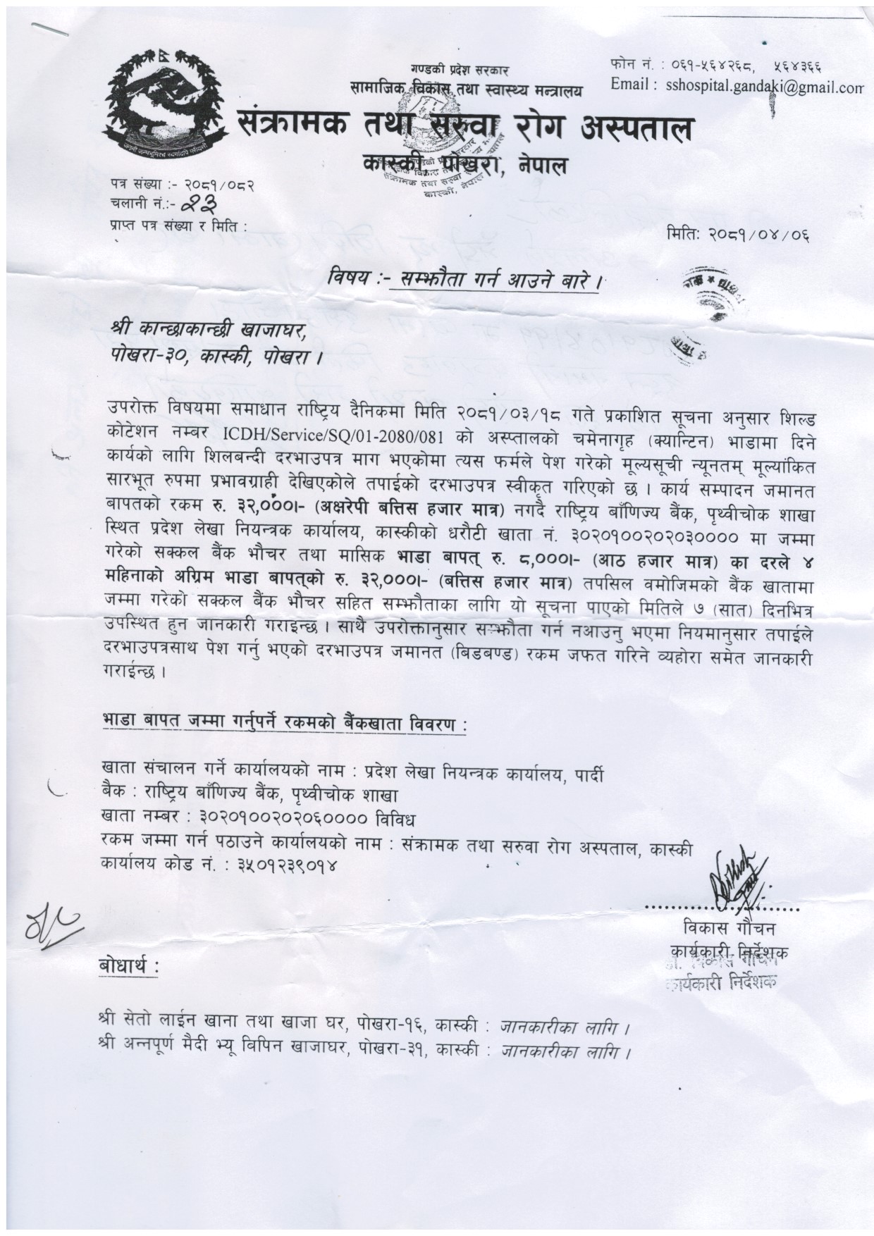 Download: चमेना गृह संचालनका लागि सम्झौता गर्न आउने बारे